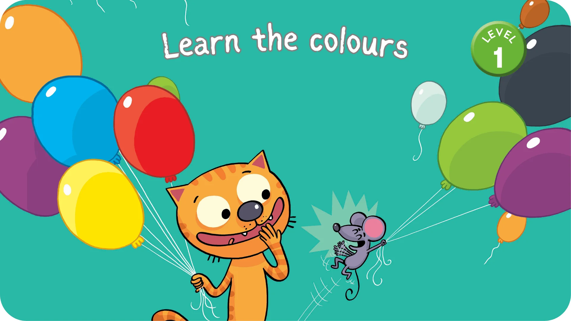 Avec Cat and Mouse : Meet the animals!, les enfants vont rencontrer de drôles d’animaux, apprendre leurs noms et découvrir leurs cris en anglais. Ils vont également connaître les couleurs avec le titre Learn the colours, et s’amuser à suivre tous ces jolis ballons qui s’envolent d’une page à l’autre…